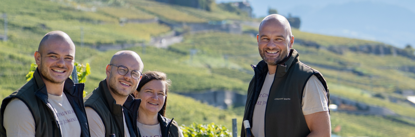 Après une vie bien remplie, Pierre-Luc Leyvraz a confié l’avenir de son domaine à la famille Jomini, vignerons-encaveurs comme lui. Benjamin et Guillaume, forts d’une solide formation en viticulture et en œnologie, assurent la relève avec passion. Depuis le 1er janvier 2024, une belle collaboration unit le dynamisme et l’ambition des Jomini à la sagesse et à l’expérience de Pierre-Luc, qui transmet son savoir… et peut-être même la recette de la potion magique. Mais chut, c’est un secret !